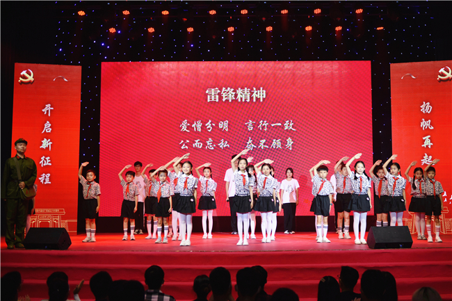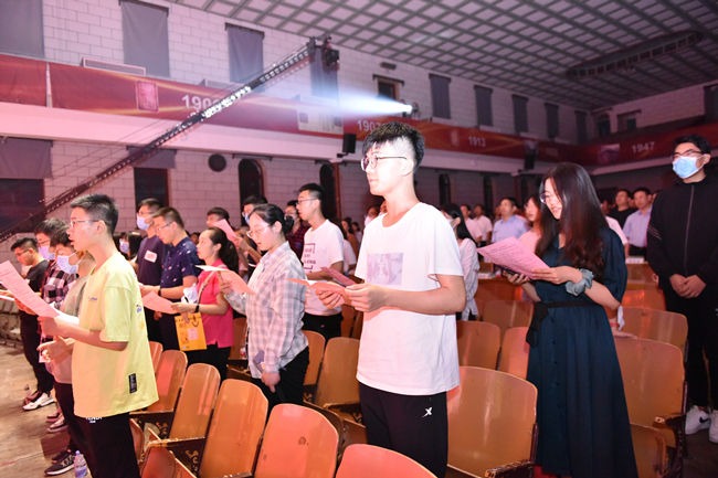 省委党史学习教育第六巡回指导组成员、全体在家校领导、学校各单位各部门负责同志与近千名师生一起观看演出。