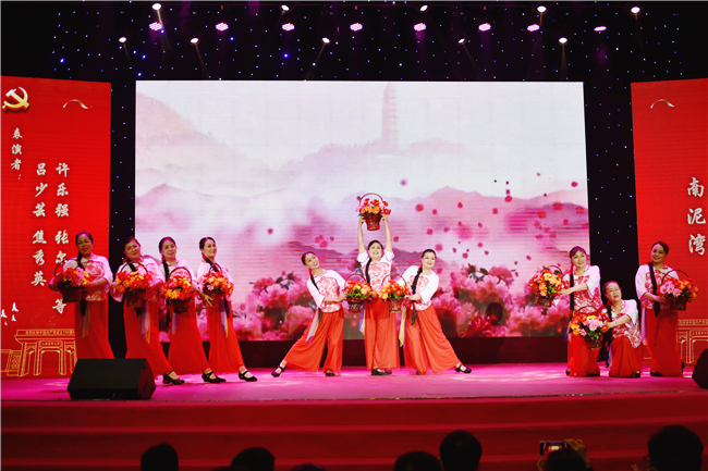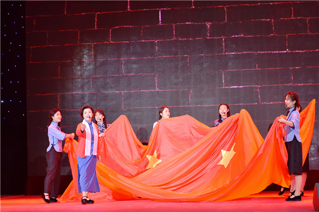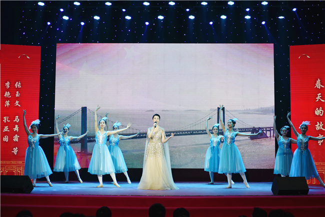 在文艺晚会的最后,全场观众起立,共同高唱《跟着共产党走》,嘹亮的歌声在礼堂回荡,热烈的掌声经久不息。