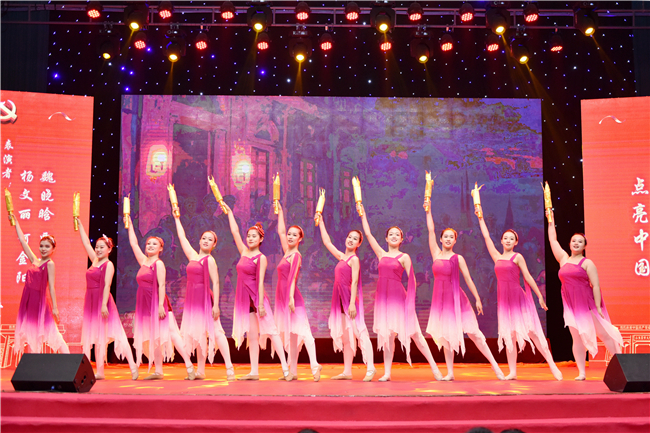 舞蹈《点亮中国》拉开了晚会的序幕。在“信仰”篇章中,表演者通过歌曲《火种》《绣红旗》《天下百姓》、舞蹈《南泥湾》,生动展现在大革命的烽烟中,中共一大燃起的火种,呈现“初心在这里诞生,梦想在这里启航”的壮阔历史,表达了在艰险的长征路上,在抗日战争、解放战争的沙场上,中国共产党人坚定地信仰马克思主义、共产主义,为了信仰顽强斗争、不畏牺牲的坚定意志。