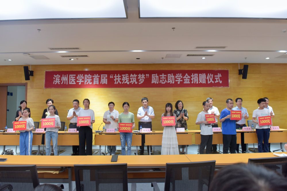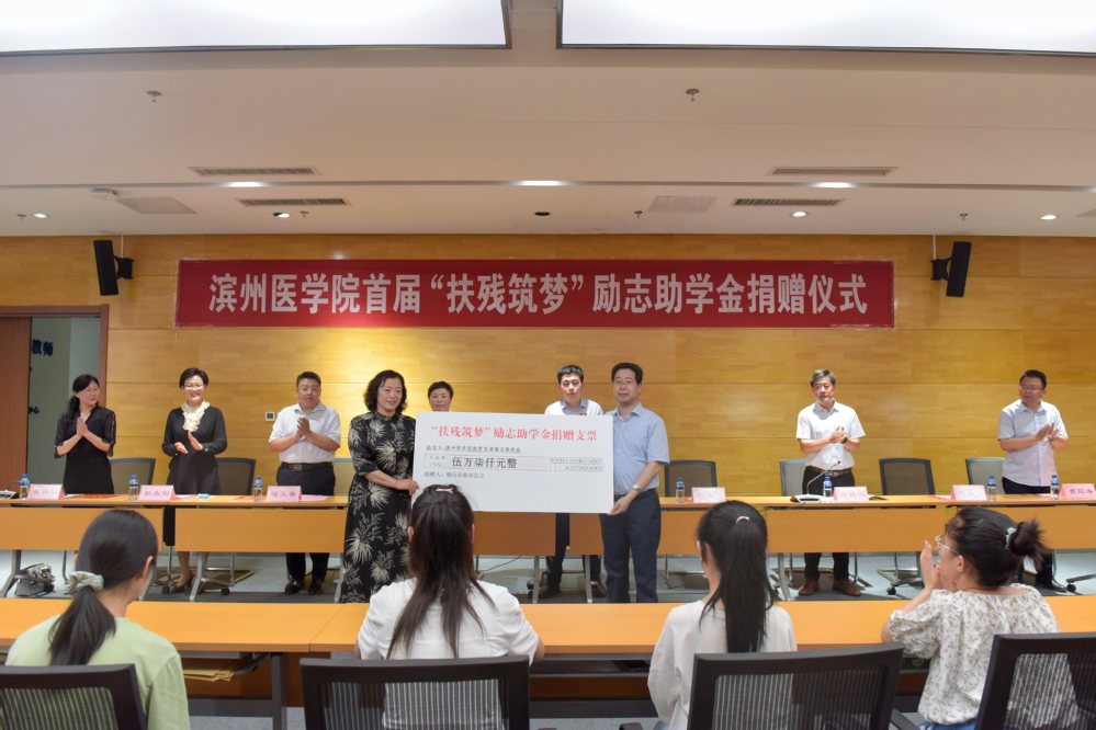 7月6日,滨州医学院党委统战部、妇委会联合烟台市慈善总会和爱心企业山东华彬会计师事务所举办首届“扶残筑梦”励志助学金捐赠发放仪式,捐助57名残疾人大学生成长成才、追梦圆梦。校党委委员、宣传部部长张玉龙出席仪式并讲话,烟台市慈善总会秘书长赵东丽,山东华彬会计师事务所有限公司总经理王海平,学校相关部门院系负责人及特殊教育学院师生60余人参加仪式。党委统战部常务副部长颜廷海主持仪式。