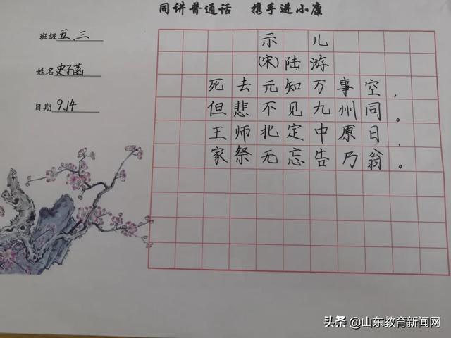 莱山第九小学开展推普班会和手抄报制作