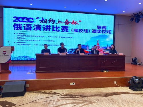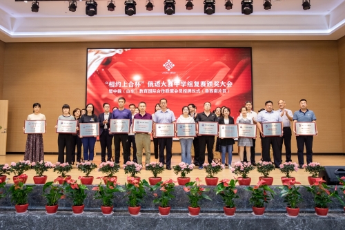 9月25日下午,“相约上合杯”俄语大赛高校组复赛颁奖仪式在济南举办,省外办孙业宝副主任与省教育厅二级巡视员梁斌言共同出席并为获奖选手及单位颁奖。复赛共选出11名一等奖和20名二等奖,山东大学、山东第一医科大学、山东师范大学、山东交通学院、山东农业大学等20所高校获得优秀组织奖。