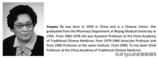 获奖人之一:屠呦呦
