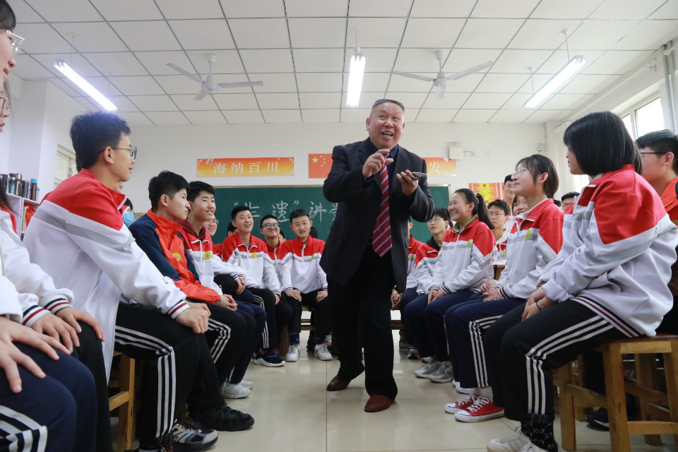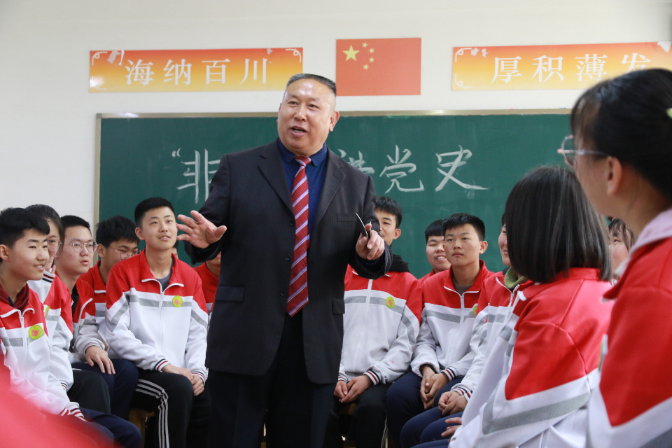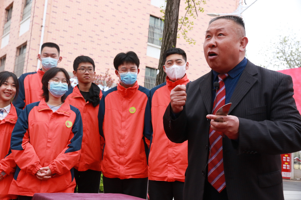“八路军新四军坚持抗战,解放军横扫残敌建家园……”快书声声说党史,红色精神润心田。4月12日,山东潍坊高密市第五中学创新党史教育形式,邀请当地曲艺团艺术志愿者来到校园,以山东快书这种喜闻乐见的形式把党的历史宣传给中学生,引导中学生在党史学习中传承红色基因。