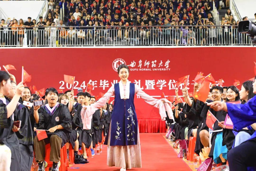 不仅是青岛大学,山东各大高校的毕业典礼各具特色,亮点纷呈。烟台大学毕业生毕业典礼上请副校长喝香槟,副校长唱起“驼铃”与其暖心互动;曲阜师范大学毕业典礼上,学生以歌舞戏腔演绎《盗墓笔记·十年人间》《赤伶》,国风感拉满;在中国海洋大学,毕业典礼上演浪漫一幕,男生向心爱的女孩现场求婚,班长和团支书的爱情让网友直呼“太甜了”;山东青年政治学院毕业典礼上,学校为毕业生准备一场浪漫烟花秀;山东财经大学邀请2020届、2021届、 2022届毕业生参加毕业典礼,为他们的青春补上难忘的一课,“高数男神”宋浩深情献唱“十七年”……