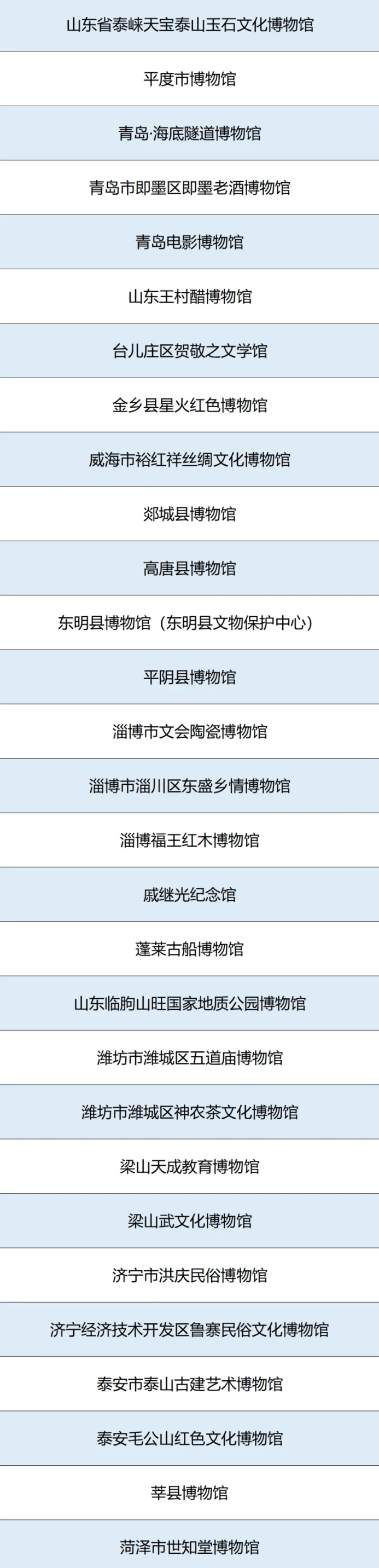 至此,山东省共有一二三级博物馆189家。其中,一级博物馆32家,二级博物馆81家,三级博物馆76家。各项指标居全国第一位。